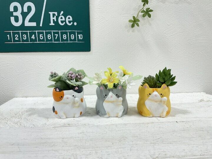 【ミニポット】リトルレジンポット まねきいえねこA 穴なし ミケ アメリカンショートヘア 1号ミニサイズ ポット ナチュラル 雑貨 ナチュラル雑貨 おしゃれ 植木鉢 鉢 園芸 植物 花 | choco*lat ショコラ