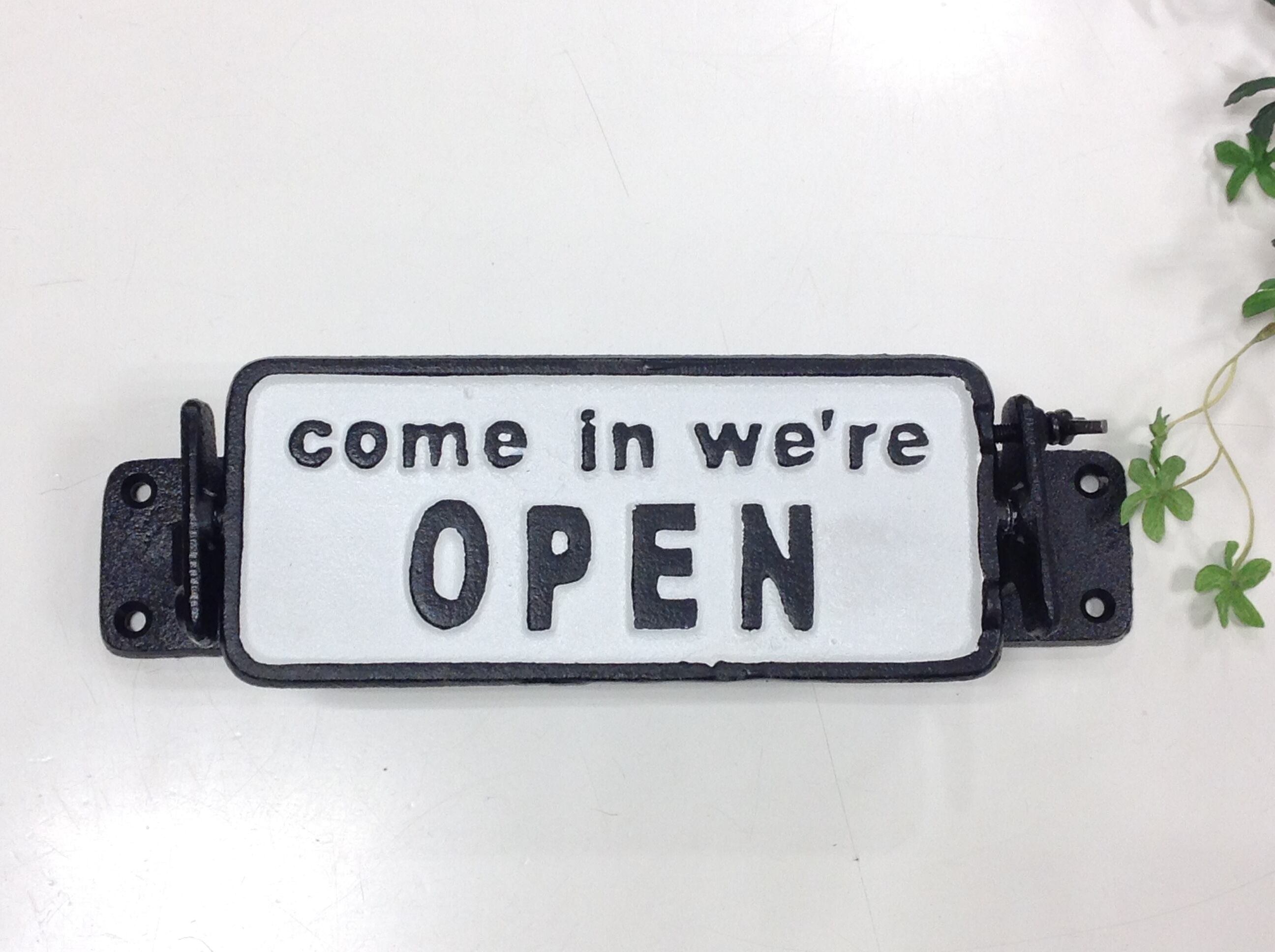 2WAY!アイアン製 アイアンプレート OPEN/CLOSE ホワイト/ブラック