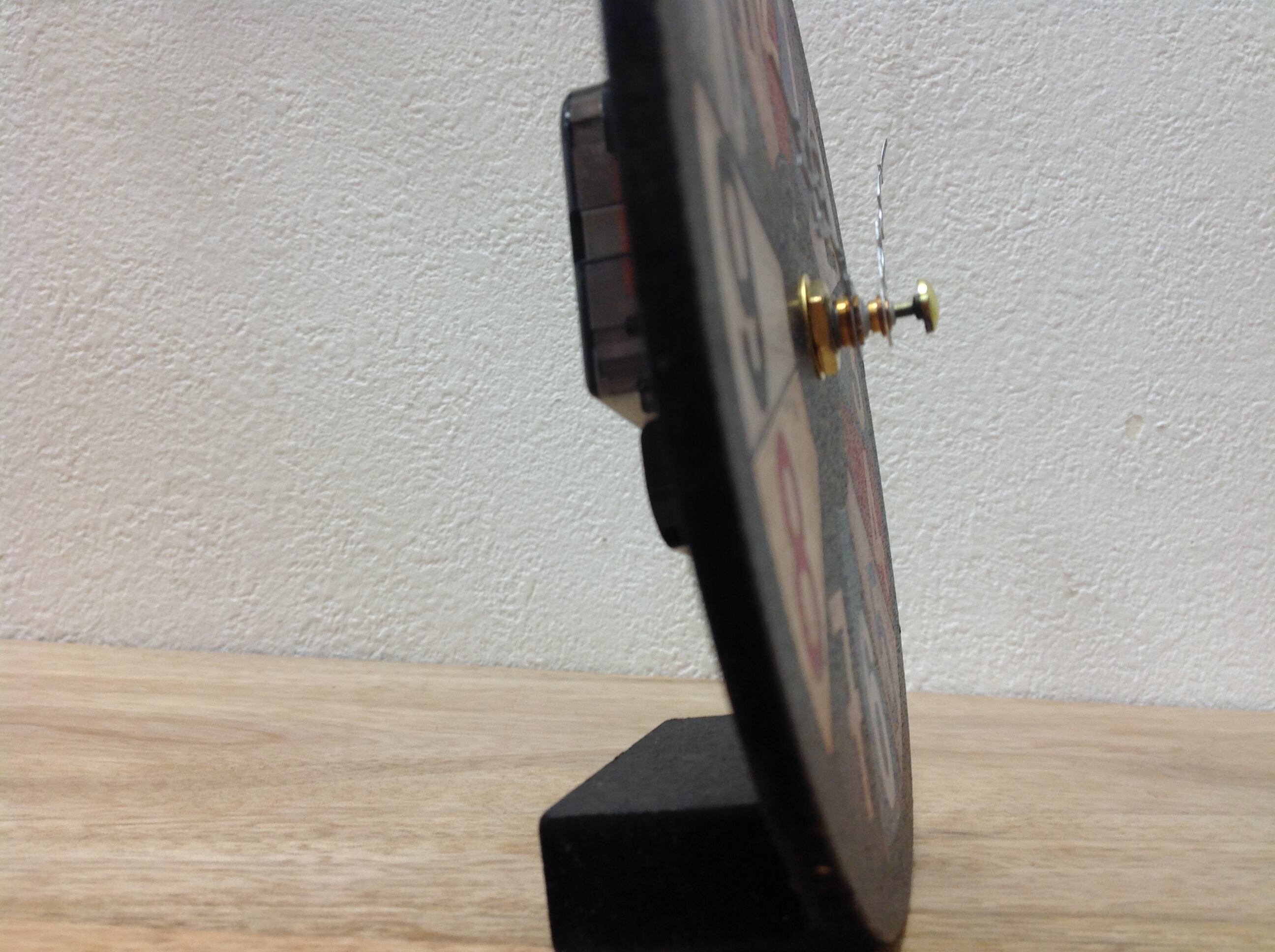 柄は、アンティーク風ウッドの色板を重ねて作ったような感じになってます!カッコいい!お洒落!!それと裏面に電池を入れるところがあります。 !この時計は特に文字盤の柄がかっこいいです( ̄▽ ̄)