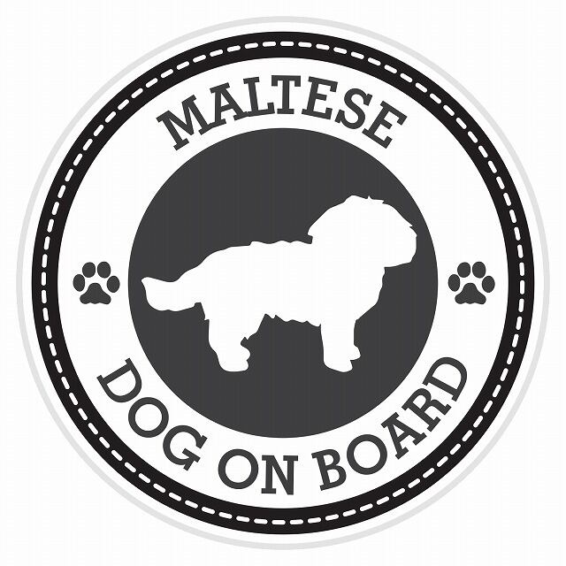 『DOG ON BOARD MALTESE 』マルチーズ乗ってます!のセーフティサインステッカーシールです。ヨーロッパ原産のマルチーズ。人なつっこく、外交的な性格の持ち主です。飼い主に従順です。日本でも人気ですね!