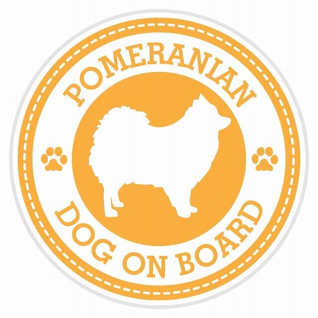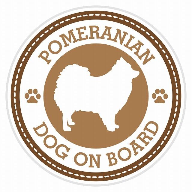 『DOG ON BOARD POMERANIAN』ポメラニアン乗ってます!のセーフティサインステッカーシールです。