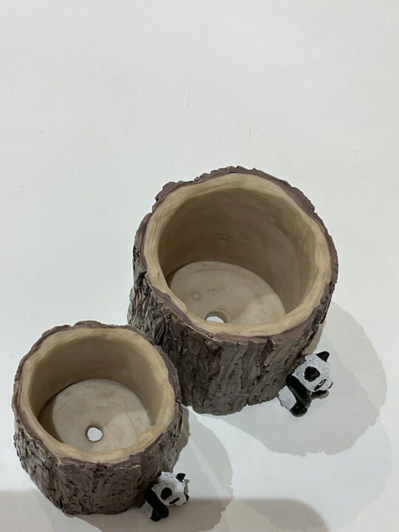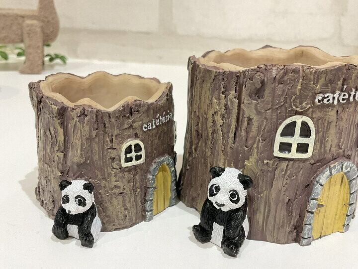 【ミニポット】パンダアルブルポットM 4226 ガーデンオーナメント 室内 ミニプランター 鉢植え テラコッタ 穴あり ガーデンポット お庭 置物 おしゃれ オシャレ 植木鉢 鉢 切り株 キリカブ きりかぶ 多肉植物 ぱんだ | choco*lat ショコラ