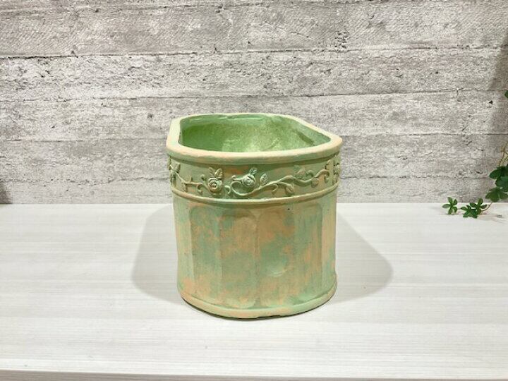 グラスファイバー ローズフロットンオーバル LGR gf4399 ライトグリーン ヴィンテージ プランター 陶器 皿なし 穴アリ シャビー アンティーク おしゃれ 植木鉢 鉢 カッコいい植木鉢 グラスファイバー可愛い植木鉢 | choco*lat ショコラ